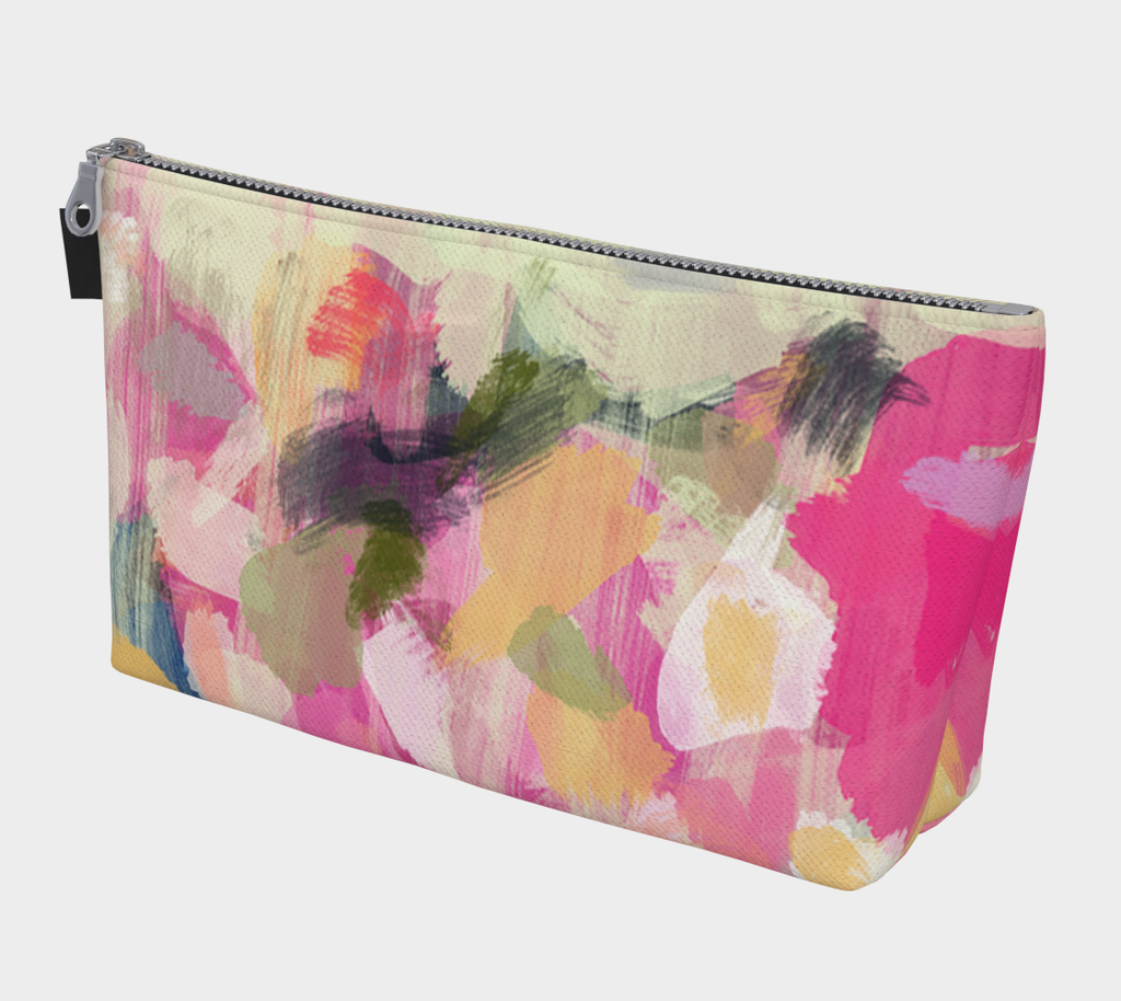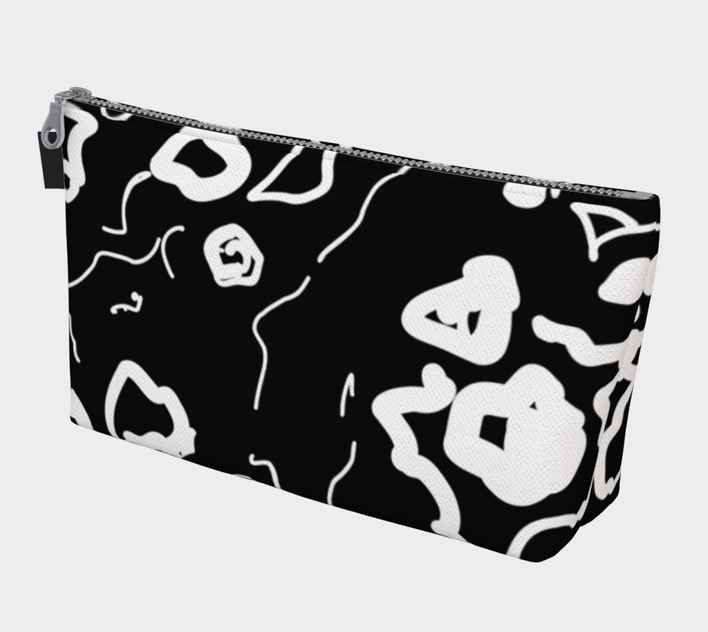 Denim lined zippered makeup bags featuring printed artwork. Keep your essentials beautifully organized—whether it's jewelry, lingerie, ear pods, or makeup.